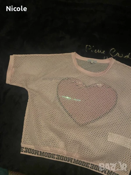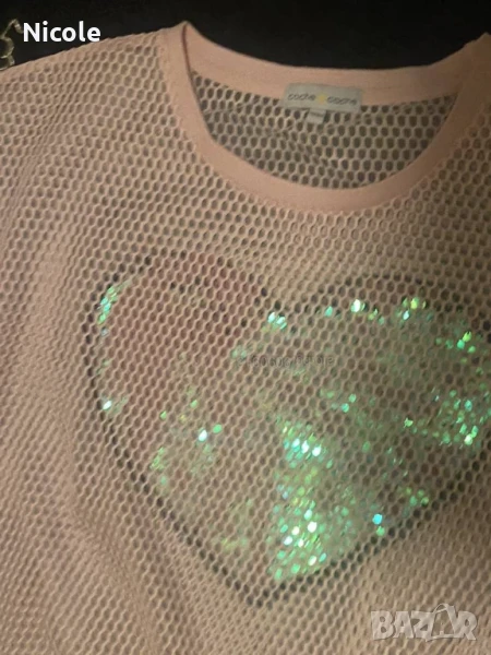 Уникална диско мрежеста блуза със сърце от паети, на марката: CASHE