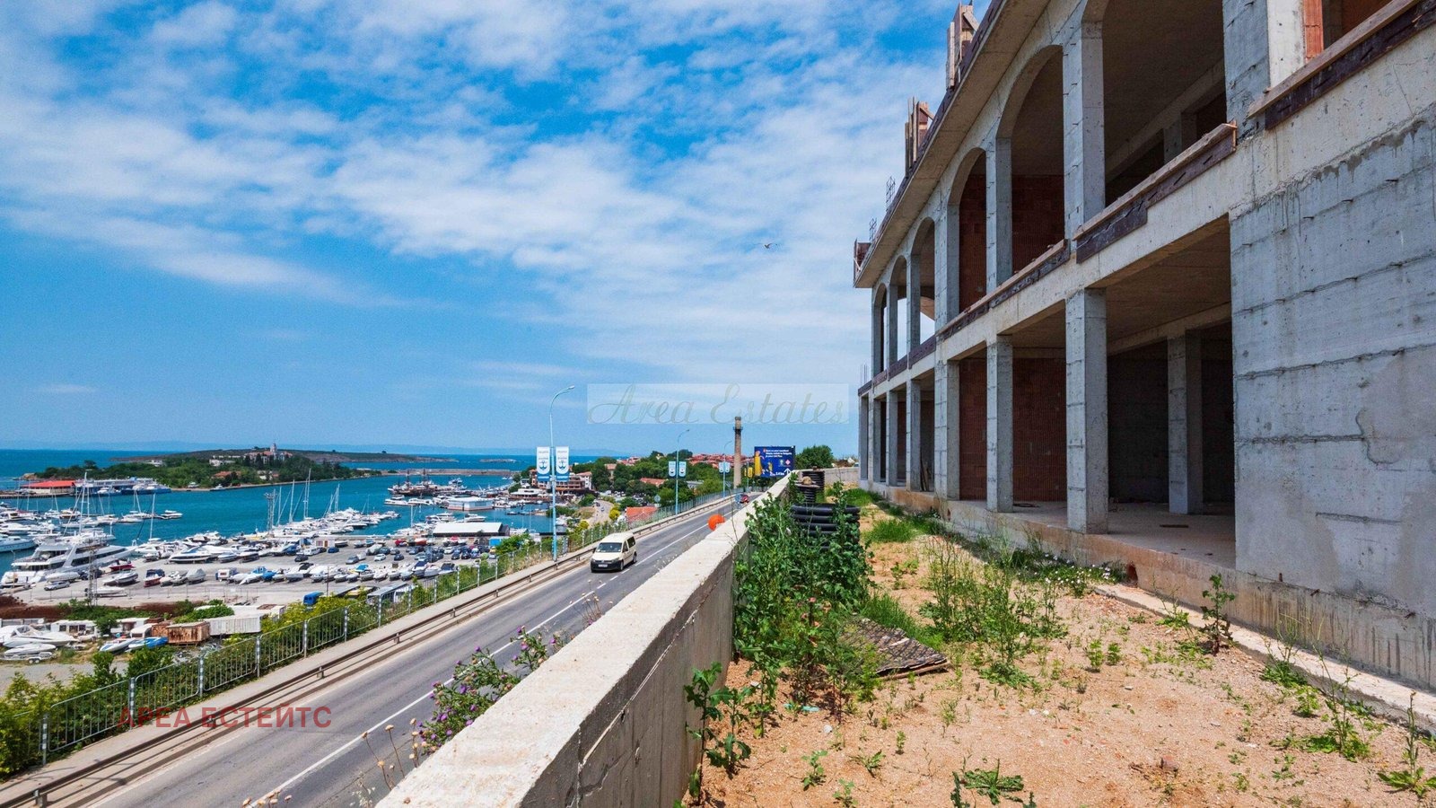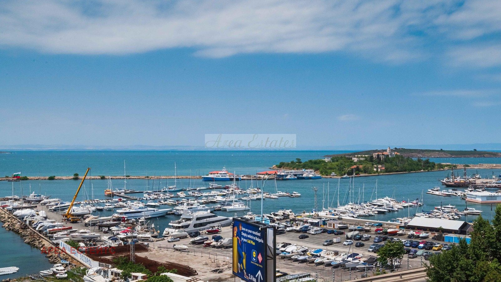 Фронтална гледка към морето и марината на Созопол едно от най-красивите кътчета на българското Черноморие.