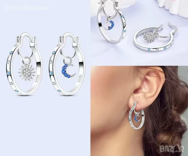 Infinity"Сребърни висящи обеци халки луна и слънце"/,колекция"Stars"/нови → Обява 50865310
