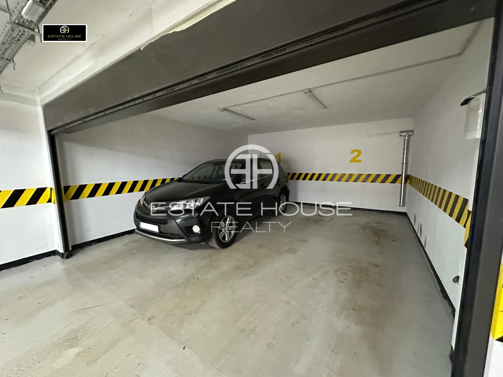 В цената на имота са включени две подземни паркоместа в подземния паркинг на сградата, с топла връзка към асансьора и апартамента.