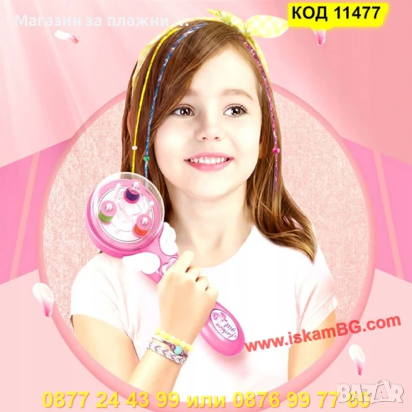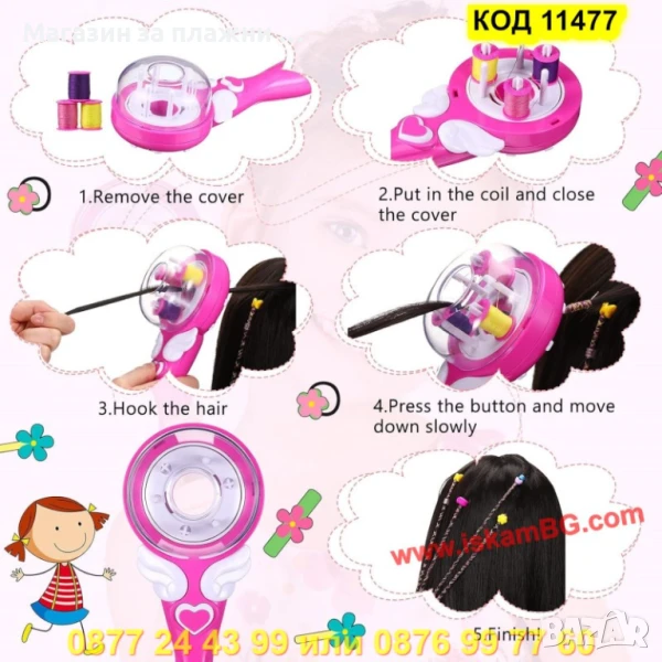 Преобразете косата на вашето дете само за секунди с тази вълшебна и лесна за употреба детска машинка за плитки! Забавлението започва с натискането на един бутон – и оттам насетне се раждат стилни, уникални и цветни прически, достойни за истинска модна икона!