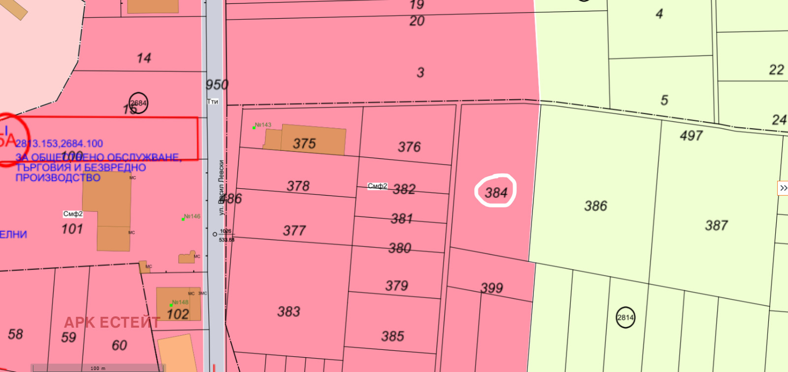 АРК ЕСТЕЙТ ЕООД Ви предлага парцел на 2 улици в гр. София, район Връбница, до ул.Васил Левски, зад номер 143. Урбанизирана зона-Смф2-Смесена многофункционална зона предимно за околоградския район. Плътност на застрояване 40/ 60, КИНТ 1.2, Мин. озеленена площ 40/ 30, Кота корниз няма ограничение. Площите с жилищно предназначение не могат да надхвърлят 60 % от общата разгъната застроена площ (РЗП) на всяка сграда в УПИ. Намира се на 700м от бул. Ломско шосе. Граничи с регулация и складове. Подходящ за застрояване с производствени, складови, административни,търговски и обслужващи сгради, работилници и др. Бърз достъп до околовръстното шосе, което е на 600м. Огледи в удобно за Вас време!!! Дължи се 3% комисионна при подписване на предварителен договор! Работим и с колеги! 0888434751-Даниела Тодорова