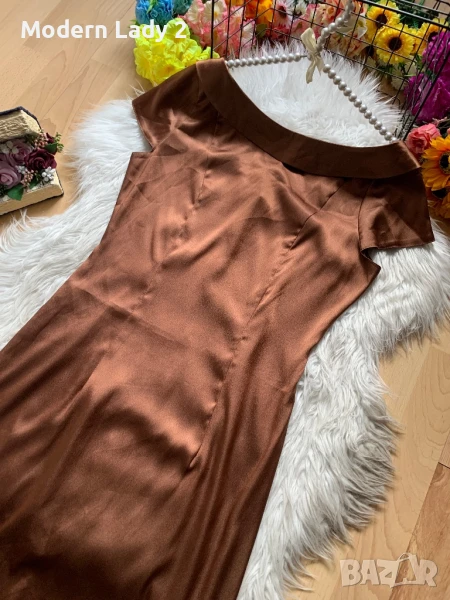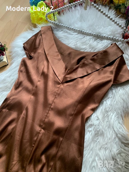 Кафява сатенена рокля, снимка 1 - Рокли - 50867061 Кафява сатенена рокля, снимка 2 - Рокли - 50867061 Кафява сатенена рокля, снимка 3 - Рокли - 50867061 1/3