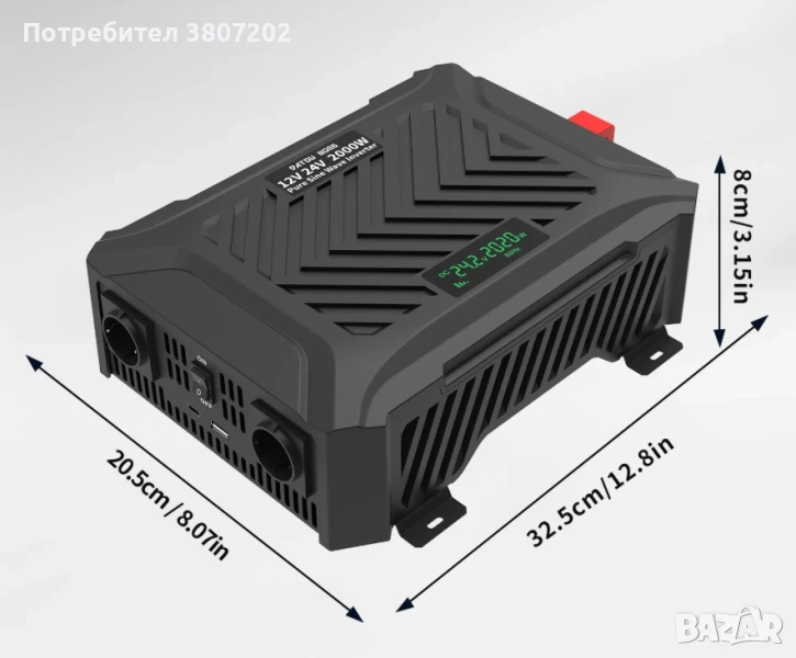 Универсален инвертор чиста синусоида с LCD екран/2 в 1/ DC 12/24v/AUTO/ към AC220v 50Hz-4000W