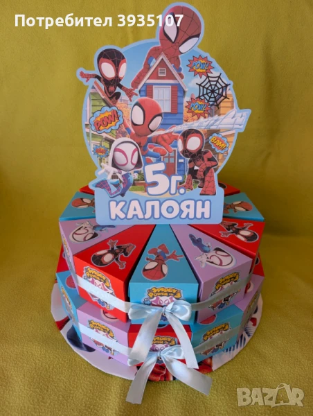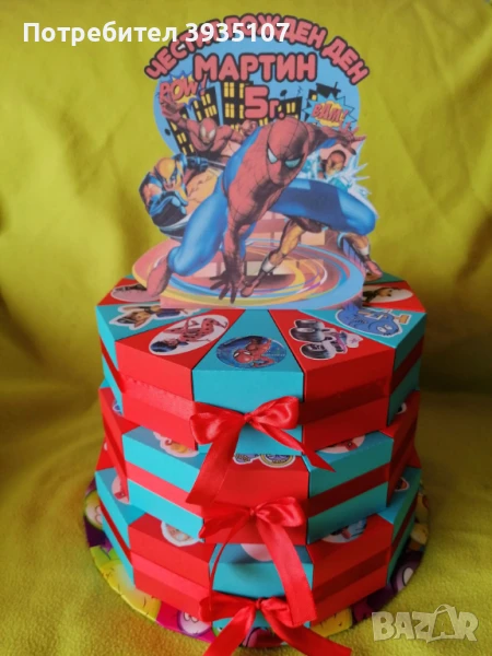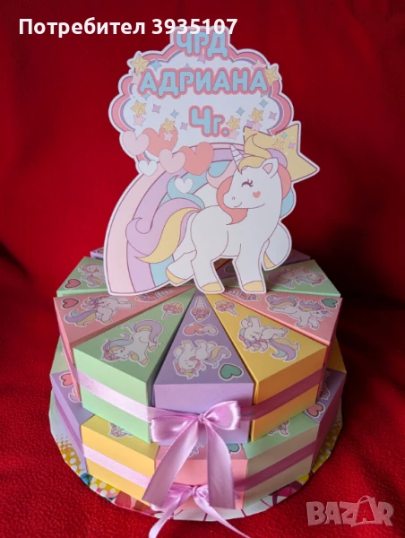 Изработваме картонени торти и парти артикули с тема по ваш избор. Празно парче е 1.30лв Доплаща се за поднос и декорацията с името. Допълнителна украса топер на клечка се заплаща отделно. Предлагаме и различни видове пълнеж - дребни играчки и лакомства. Може да разгледате всичко във фейсбук - детски магазин Мартолино.