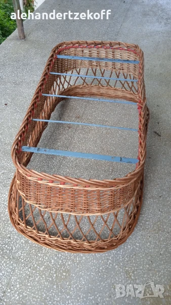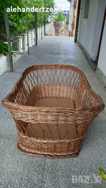 Кошчето е ръчно плетено от ракита през 60те години и е в отлично състояние, видно и от снимките. Основата е с метална конструкция за да може да се използва, както за легло на детето, така и за люлка, която се завързва за дърво или друга основа. Цената може да се коментира.