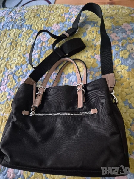 много симпатична, 3 големи отделения, джоб с цип от едната страна, къси и дълга дръжка, почти нова, 28х 22х12 см, промазан текстил, Parfois, много фръци