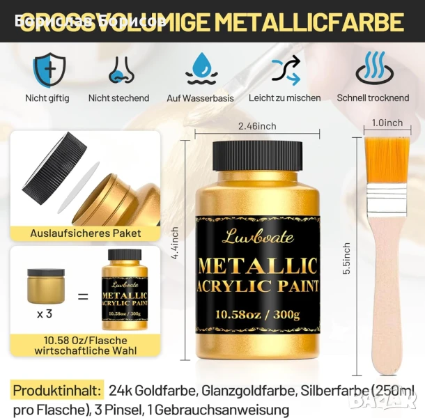 Комплект акрилни бои 3 цвята металик, снимка 1 - Други - 50867928 Комплект акрилни бои 3 цвята металик, снимка 2 - Други - 50867928 Комплект акрилни бои 3 цвята металик, снимка 3 - Други - 50867928 1/3