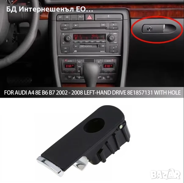 8E1857131 Дръжка за отваряне на жабка AUDI A4 B6 2000-2004, A4 B7 2004-2008, черна, с отвор за ключ,