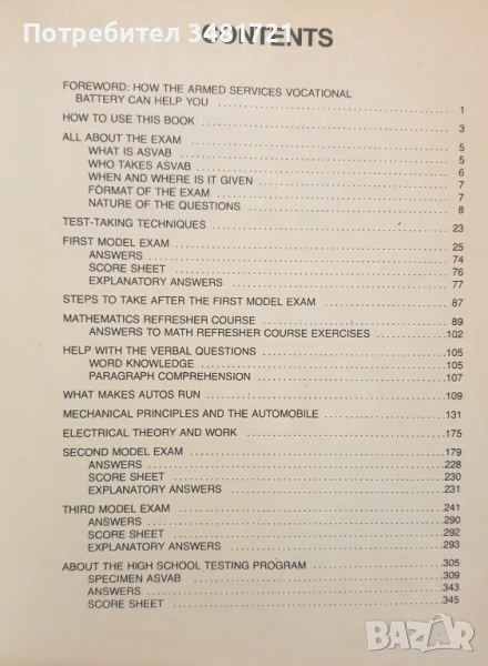 Това е книгата, ползвана през Студената война, когато войник трябва да се подготви за така наречените ASVAB тестове, независимо дали иска да постъпи в сухопътните, военноморските, военновъздушните части или националната гвардия. Разделен на 10 части, общият резултат формира AFQT - крайна оценка, която ще определи дали той ще бъде приет в дадена част на армията. В книгата, наред с материалите за подготовка, са включени и 4 примерни изпита с отговори към тях от проведените официални оценявания през 1985та година. Комбинираната крайна оценка зависи също така от фактори като ниво на образование, наличие на специфичени други дипломи (GED и т.н.). В тестовете се оценяват богатство на речниковия запас на кандидата, математическите и анализаторските му умения, умението му за извличане на информация и т.н.