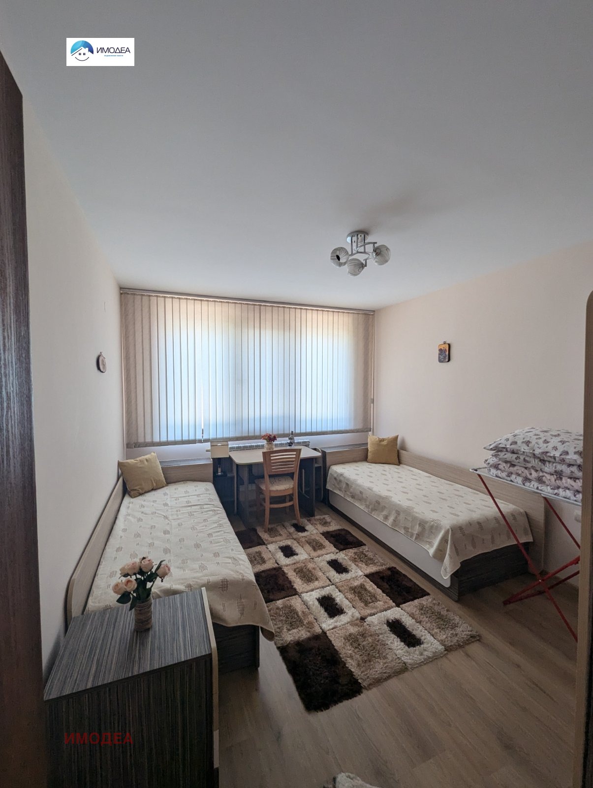 ИМОДЕА предлага на Вашето внимание луксозен тристаен апартамент под наем в идеален център на град Велико Търново. Имотът е ситуиран на трети жилищен етаж и има следното разпределение: всекидневна с трапезна част в отворен обем, две спални, баня с тоалетна, коридор, две тераси, килер. Апартаментът е газифициран. В имота е направена вътрешна и външна изолация. Жилището е напълно обзаведено с висококачествени електроуреди и мебели. В близост до него са всички възможни комуникации- училище, детска градина, поликлиника, университет, хранителни магазини, ресторанти, автобусни спирки, парк.
