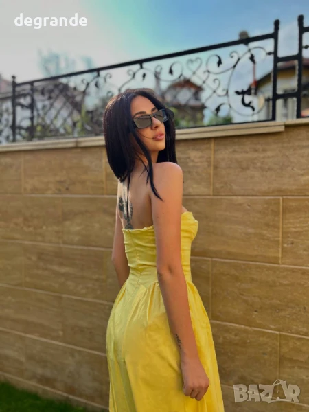 Жълта дълга рокля с прекрасно бюстие → Обява 50870591