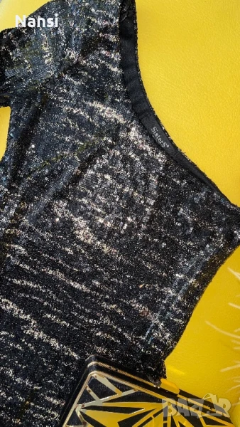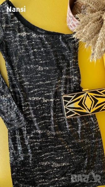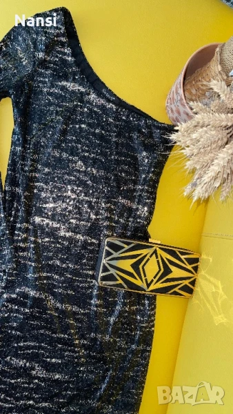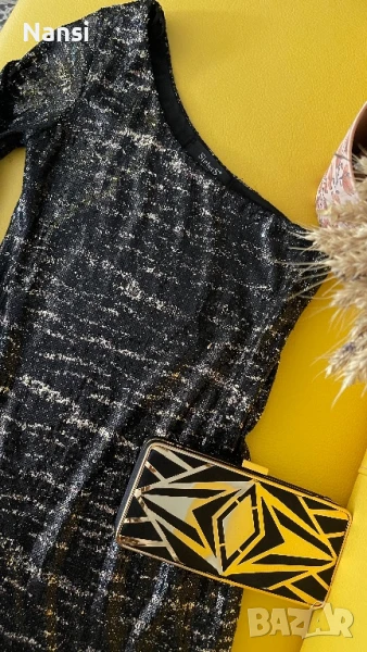 Елегантна рокля с едно рамо и красиви пайети от два цвята на SisterS point