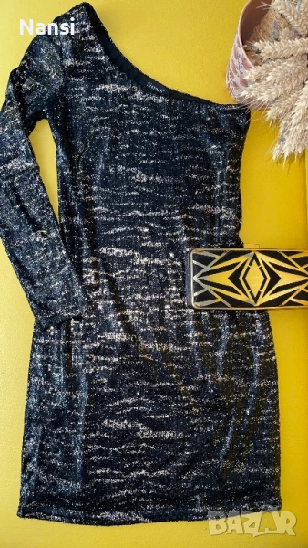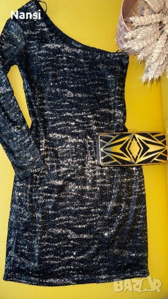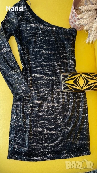 Елегантна рокля с едно рамо и красиви пайети в два цвята → Обява 50870856