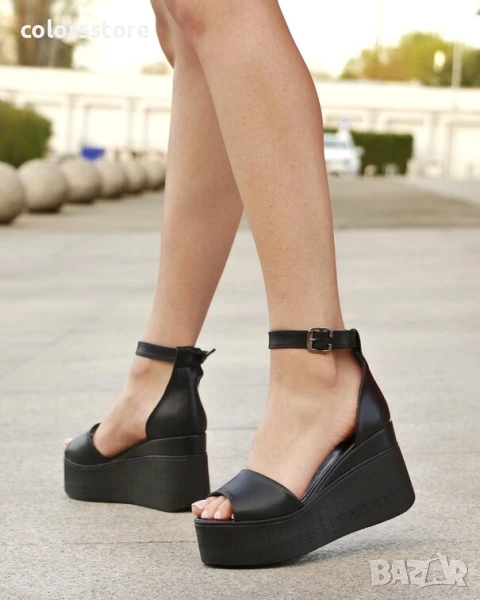 Сандали на платформа - черна кожа с черно ходило - TJL70
