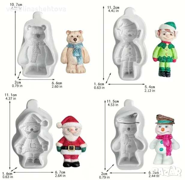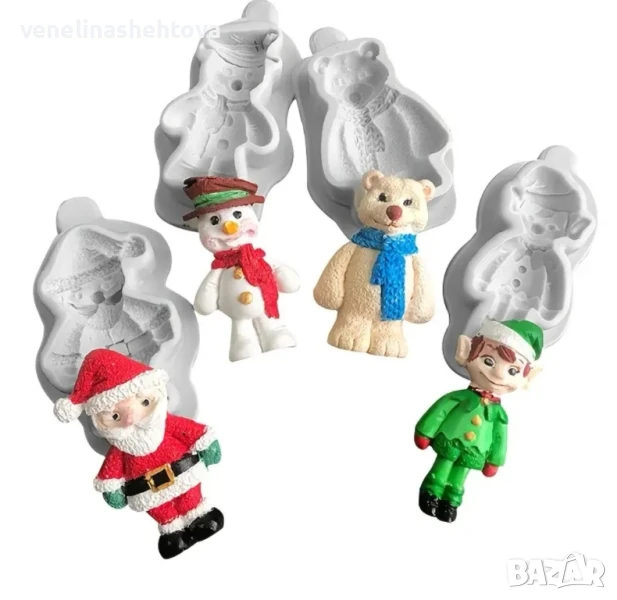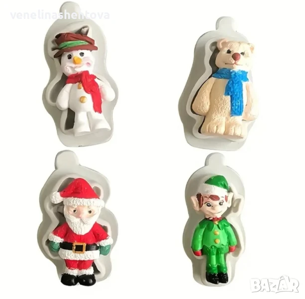 4 броя комплект коледен молд дядо Коледа елф снежен човек полярен мечок → Обява 50871080
