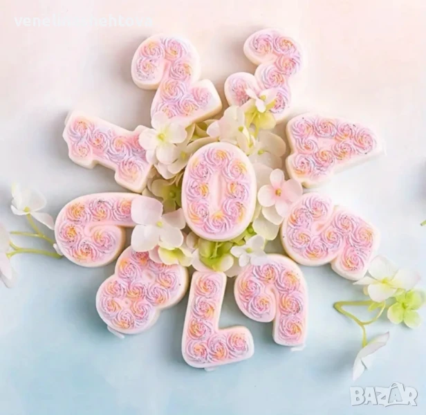 Цифри 0-9 за свещи за торта с релеф рози Силиконов молд форма → Обява 50871357