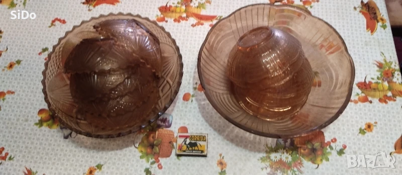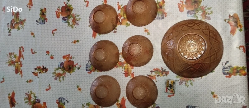 2 различни комплекта "Купа с 5-6 малки купички от кафяво стъкло → Обява 50872020