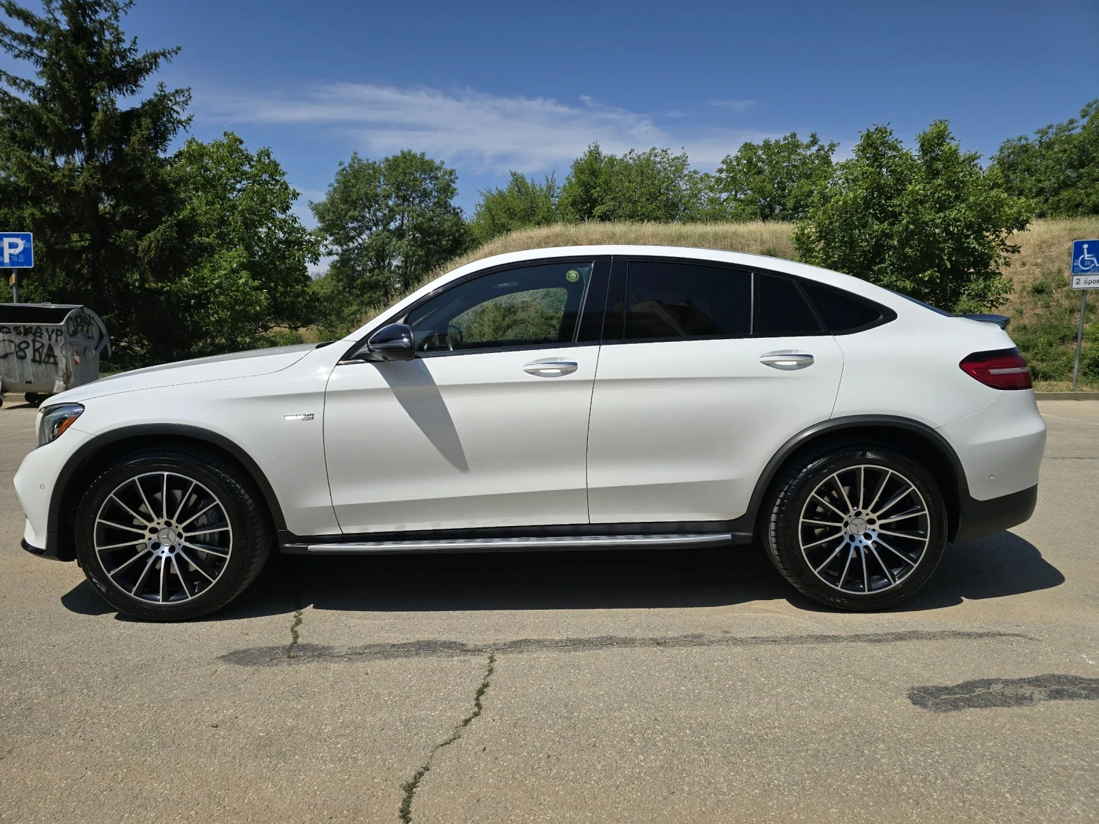 Mercedes Benz GLC 43AMG 367к. с скоростна кутия 9G tronic. Без забележка към интериор и екстериор. Колата е най високо ниво на оборудване. Лед автоматични интелигентни фарове със завиване и автоматично преминаване от къси на дълги и обратно. Кей лес система (безключов достъп и стартиране ) Ел огледала с прибиране и мъртва зона 360 камери със зонални парктроници Ел спортен салон със памет и подгряване. Спортен мулти волан със подгряване 5 режима на шофиране (eco comfort sport sport+ individual) Панорама Ел багажник Амг джанти с нови летни гуми 255/45/20 + нови зимни гуми Колата е с два ключа.