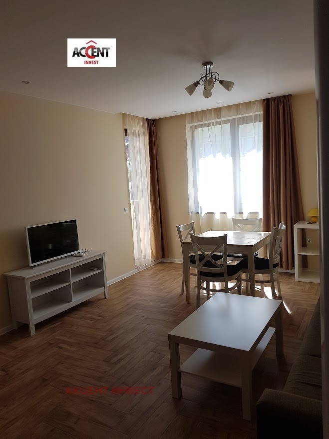 КОД 21466 'Акцент Инвест' Ви предлага тристаен апартамент под наем в район 'Чаталджа', малко над 'БУлмаг'. Имотът е с площ от 85 кв.м. и се намира на 1-ви етаж в нова сграда. Състои се от коридор, всекидневна с кухненска част, две отделни спални, баня с тоалетна и две тераси. предлага се обзаведен и оборудван с всички необходими електроуреди. Дългосрочен наем!