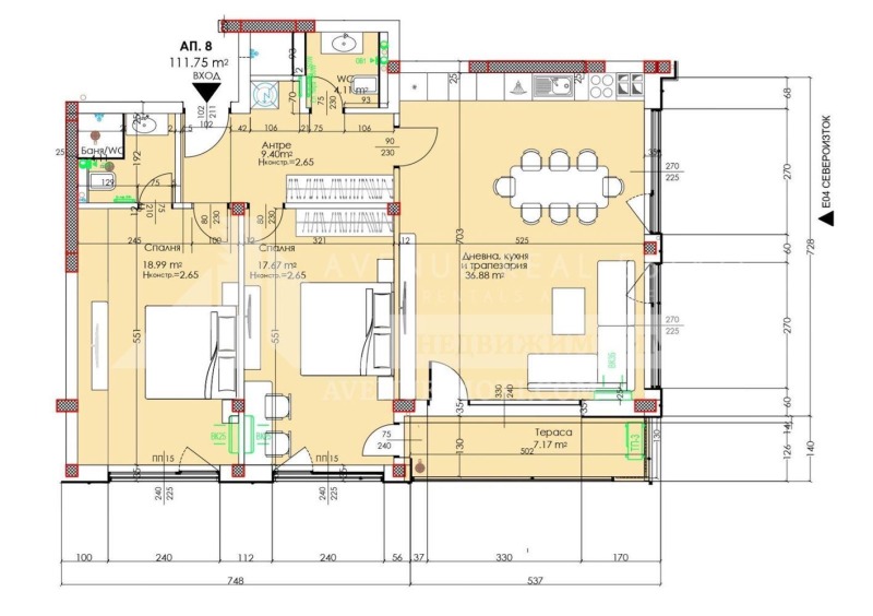 ? Излаз на тераса от дневната и кухнята