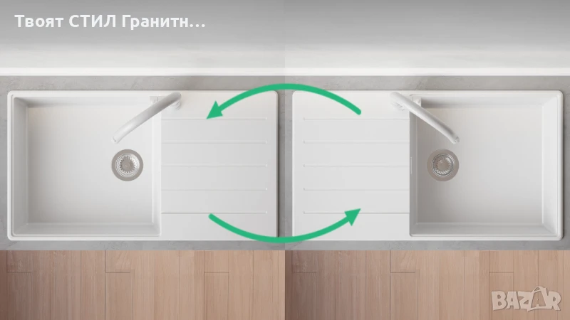 Гъвкавост на интериорния дизайн благодарение на обръщаемостта на модела, за да отговаря на индивидуалните нужди. Отцедника може да бъде поставен от дясната или лявата страна, така че можете перфектно да впишете мивката във вашата кухня.