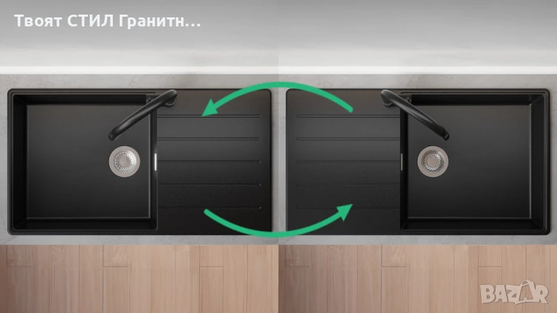 Гъвкавост на дизайна - мивката е въртяща се - отцедникът може да се монтира отдясно или отляво