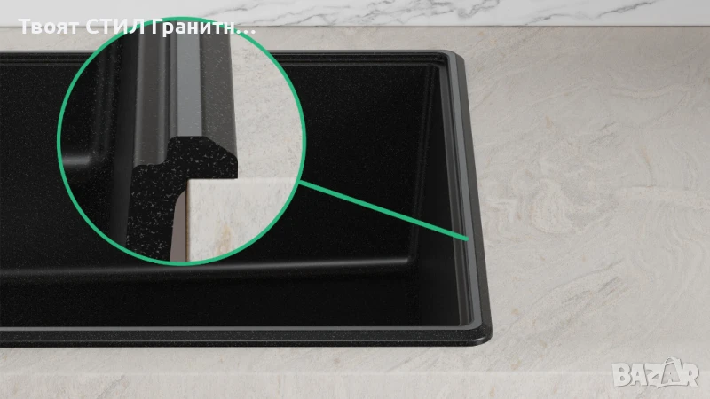 Издръжливост и здравина - благодарение на използването на най-висококачествени материали, създадохме изключително компактен, издръжлив и устойчив на надраскване и обезцветяване композит. Благодарение на високата плътност на композита, гладката повърхност на мивката осигурява висока работна хигиена и е лесна за почистване.