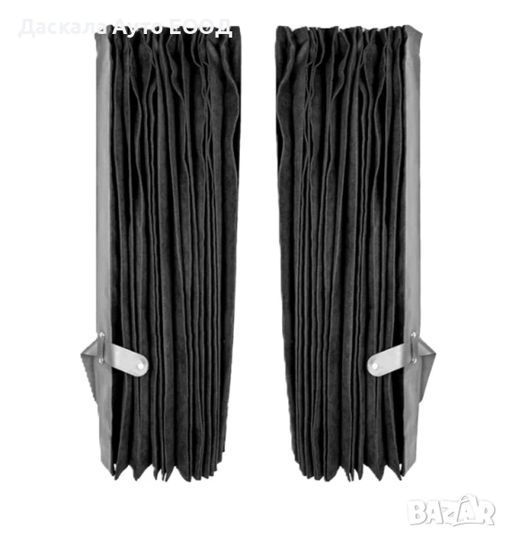 Комплектът включва 2 завеси с размери 200 см ширина x 105 см височина, осигуряващи пълно покритие за предните и страничните прозорци.