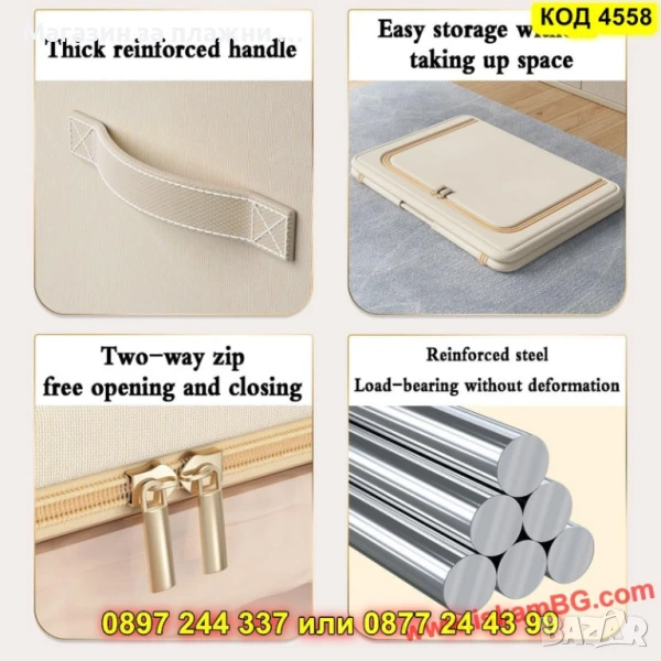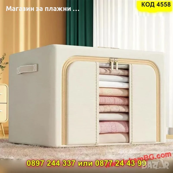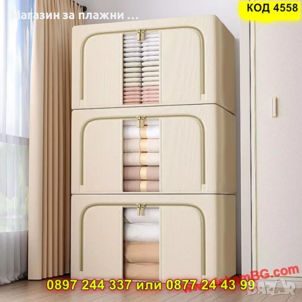 Подредете гардероба си лесно и естетично с тази здрава текстилна кутия за съхранение! Сгъваема, с метална рамка и прозрачен преден прозорец, тя е перфектна за дрехи, спално бельо, завивки и други вещи.