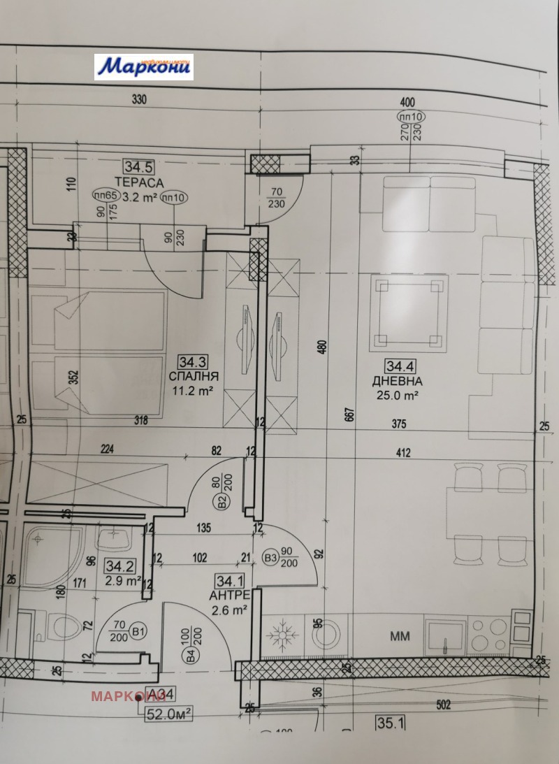 ИНВЕСТИЦИОНЕН ИМОТ: Двустаен апартамент находящ се на ул. 'Акад. Стефан Младенов', с площ от 60.81 /52/ кв.м. и разпределение: входно антре, дневна с трапезария и кухненски бокс, спалня, санитарен възел и балкон. Към него има Мазе с площ от 1.6 кв.м. Продава се на груб строеж !!! Сградата е с Акт 14 и спряно от Инвеститора строителство, предстои довършване от Собствениците на имоти в нея. Има създадена организация за това, като за целта ще се заплащат допълнително между 300 - 400 евро на кв.м. на фирма която ще довърши сградата и ще помогне за въвеждането и в експлоатация. На същия етаж в съседния вход се продава още един двустаен апартамент с площ от 61.18 /52/ кв.м. и мазе с площ от 1.9 кв.м. Закупуване на имотите с ипотечен кредит не е възможно !!! Огледи с предварителна уговорка.