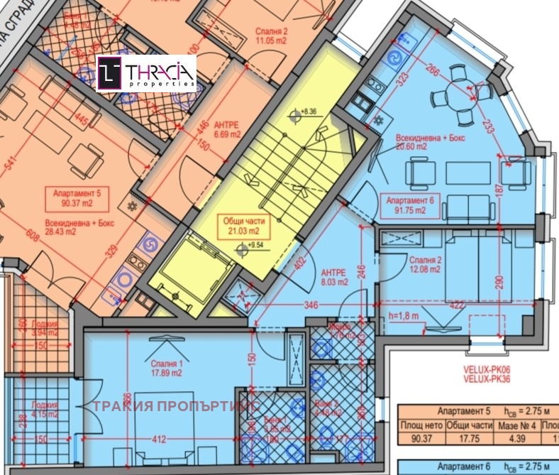 1.АПАРТАМЕНТ 6: тристаен със ЗП от 91,75 м2, РЗП-110,71 м2, на четвърти етаж.