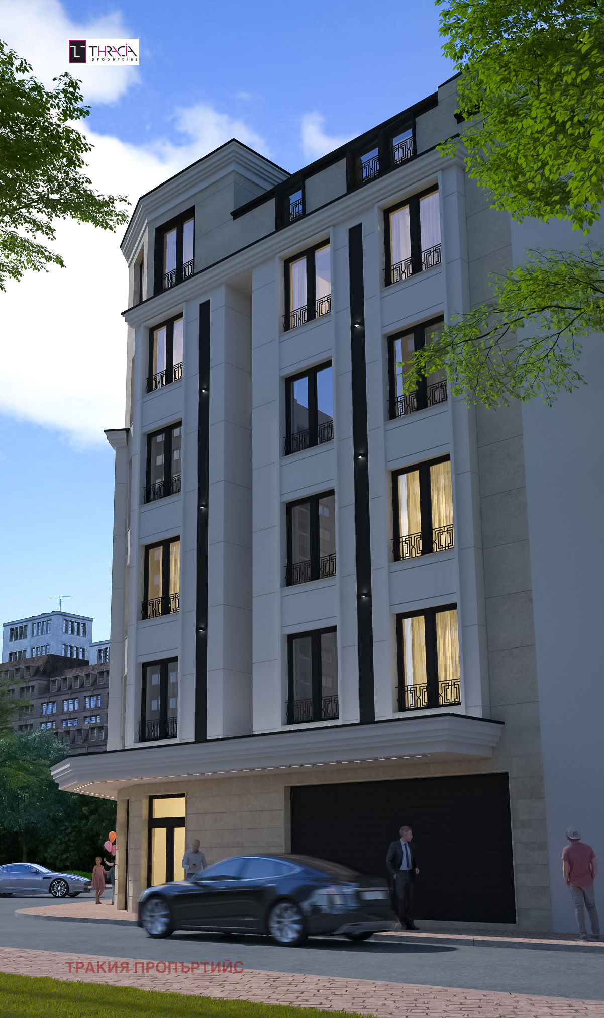 2.СГРАДА: Шестетажна кооперация с модерна, съвременна и оптимизирана архитектура. Изпълнението на сградата е със луксозни и иновативни материали и решения, с пълна хидро, топло и шумоизолация. Дограмата е висок клас PVC с трислоен стъклопакет ; заложени инсталации за терпомомпа и климатици ТЕЦ, пълно окабеляване; луксозни екстериорни врати, фасада камък, луксозно завършване.