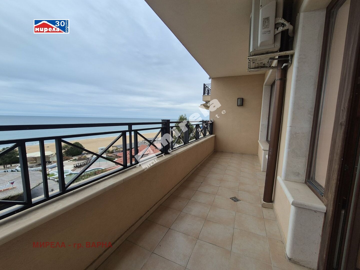 453140 Агенция Мирела прoдава изключително атрактивен тристаен апартамент с морска панорама, разположен на първа линия в курортен комплекс Златни пясъци.
