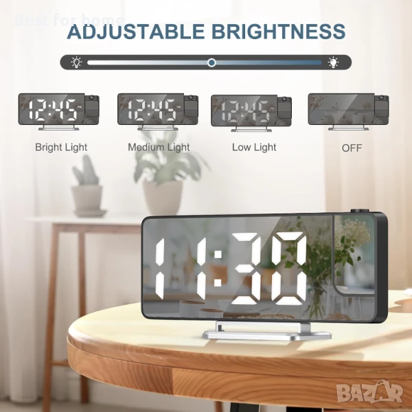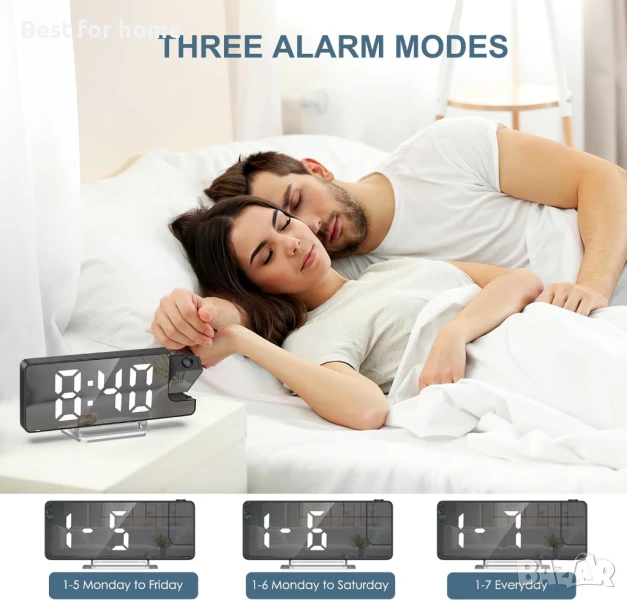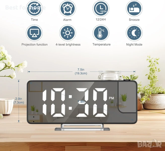 Вашата спалня се превръща в команден център! 7,9-инчов огледален дисплей с изключително големи цифри - дори баба Грета вижда часа от 5 метра! Проекционен будилник показва температура и дата в реално време - идеален, за да разберете сутрин дали имате нужда от яке или да пререгулирате отоплението.