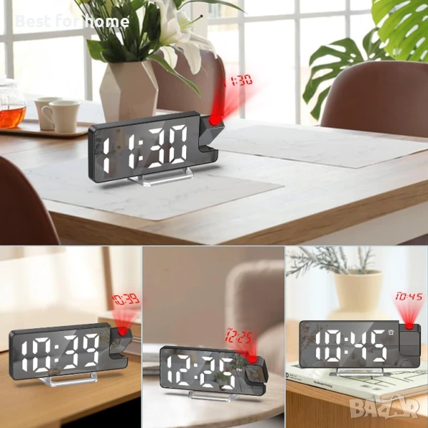 Проекция, която мисли - без значение къде гледате! 180° въртяща се LCD проекция с автоматично огледално отражение на номерата - независимо дали е проектирана върху тавана на спалнята, стената в кухнята или рафта с книги: дисплеят винаги е четим правилно.