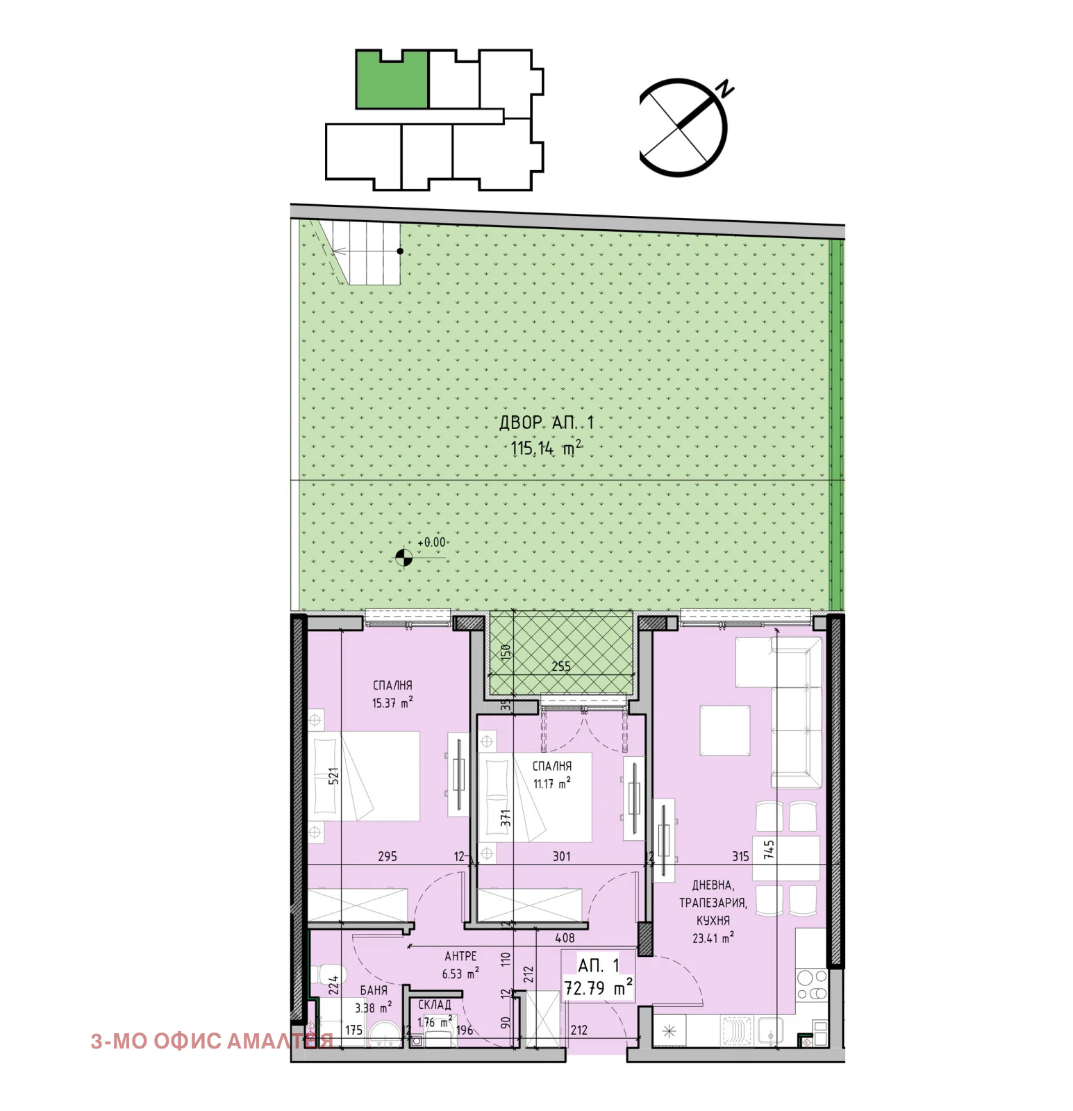 3mo Амалтея предлага за продажба тристаен апартамент със собствен двор на първи - партерен етаж, в новостроящ се комплекс от две луксозни жилищни сгради в ж.к. Малинова долина, в близост до бул. Околовръстен път.