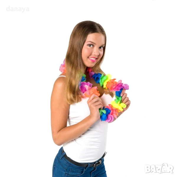Добавете тропическо настроение и свеж акцент към вашия празник с този многоцветен парти гердан тип хавайка. Изработен от леки и ярки неонови цветя, той е създаден да привлича вниманието и да създава усмивки. Подходящ както за деца, така и за възрастни.