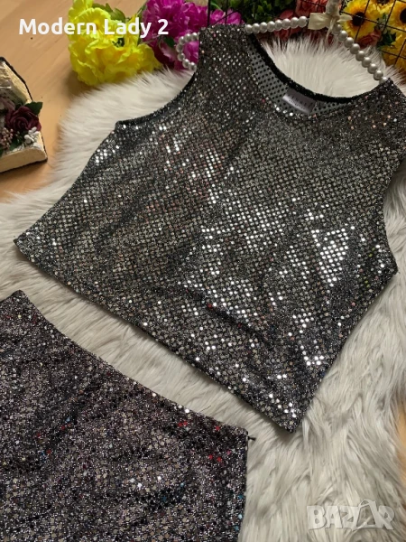 Нов пайетен сребрист топ → Обява 50876812