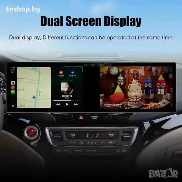 Универсална двойна мултимедия за автомобил с Android OS, висока резолюция 1920x720, поддръжка на CarPlay, Android Auto, GPS, WiFi и още!