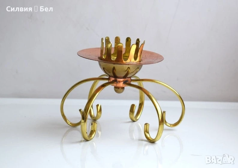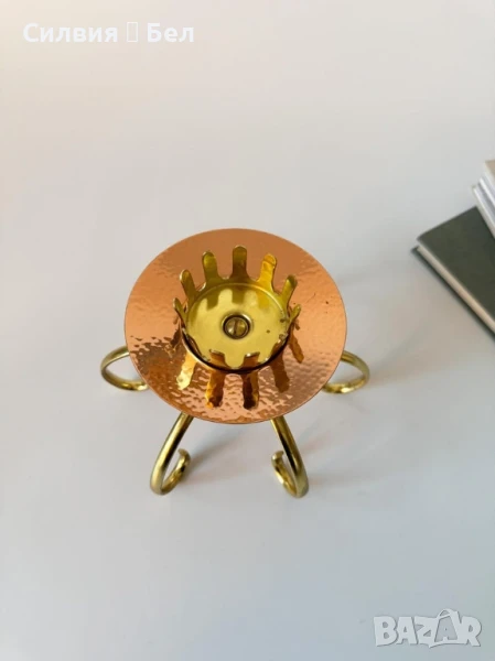 ВИНТИДЖ свещник в стил Арт Нуво от 70-те години. Масивна месингова медна плоча в комбинация със златен месинг.Размери: Височина: 12 см, Диаметър - 16см►Цвят: Бронз, Антично злато►Период: Средата на 20-ти век►Стил: Минималистичен, Модерен от средата на века. ೋ🌷 ೋ🌷 ೋ🌷 ೋ🌷 ೋ🌷 ೋ🌷
