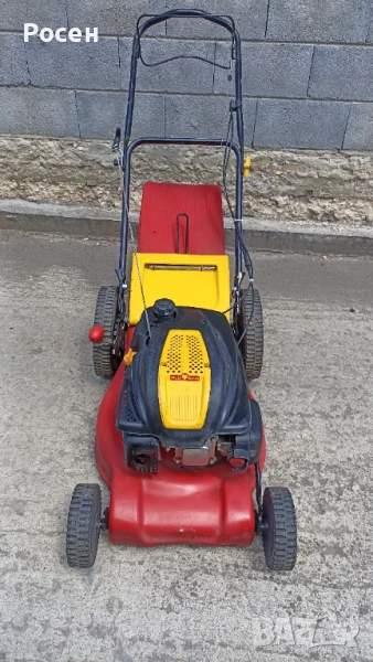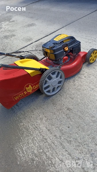 Продавам бензинова самоходна косачка Wolf Garten с кош, с 6 степени за ниво с автомат с една ръчка,широчина на косене-46 см.,големи задни колела. Внос от Германия.