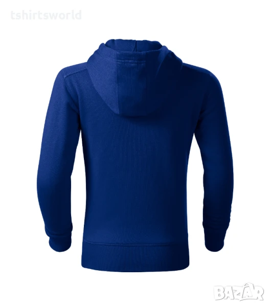 Страхотен нов детски топъл суичър с цип, качулка и две джобчета встрани тип кенгуру в син цвят. Произведен под марката MALFINI от 65 % памук, 35 % полиестер на 300g/m², което го прави изключително топъл и желан от нашите малки клиенти. Уникален модел с качулка с подплата и връзки за стягане, а вътрешната част на бието на деколтето е обшита с контрастна лента. Моделът е подходящ за пролетния и есенно-зимният сезон, има ластични маншети на китките и ханша, запазващи топлината. Разполага с мека подплата и два отворени джоба в страни. Свободната кройка го прави подходящ както за спорт, така и за ежедневно носене с дънкови панталони. Може да се пере до 40 градуса.