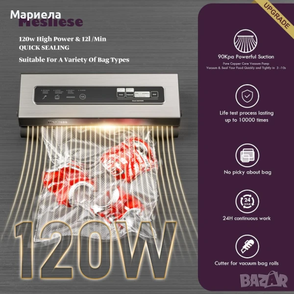 Вакуумна машина Mesliese, мощна 90Kpa , 120w / Уред за вакуумиране на мокри и сухи храни