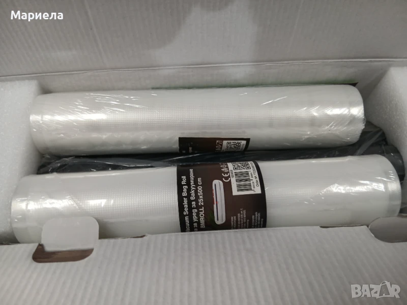 Нова с минимални забележки по опаковката, в комплект с 2 ролки фолио за вакуумиране х 5метра.