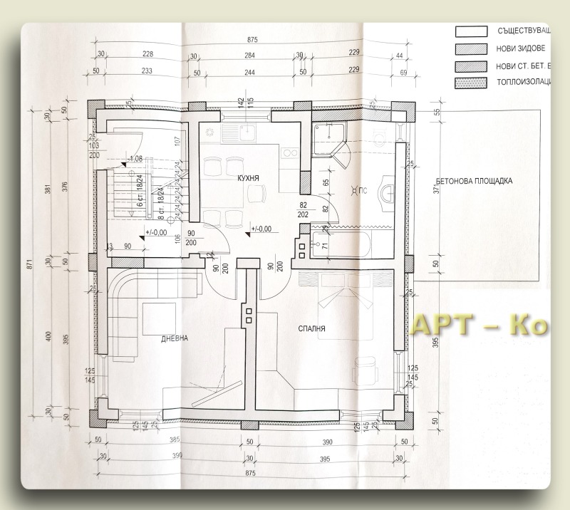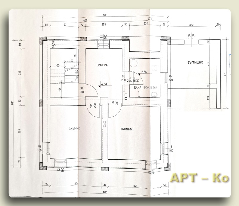 КОД 3926; Масивна двуетажна къща в гр.Радомир - Върба. В дворно място от 561 м2 са ситуирани масивна сграда с РЗП 242 м2, масивен гараж 24 м2, лятна кухня- 19 м2 и стопанска постройка- 22 м2. Направена е реконструкция на съществуваща жилищна сграда на база изготвен проект за надстрояване. Така са обособени приземен етаж, етаж и надстроен - трети, мансарден. Всеки разполага с кухня-трапезария, дневна, спалня и санитарен възел с баня. Всички дограми са нови-алуминиеви с прекъснат термомост и стъкла 4 сезона. Изцяло е обновена електроинсталацията. Стените са гипсокартон с 10см. изолация. А за тези помещения, които не са завършени, има осигурен материал и изолация. Но впечатляващата тук инвестиция е изградената система за отопление с термопомпа. Закупени са радиаторите за цялата сграда. Да не пропуснем и цялостно новият покрив, също с изолоция в подпокривното пространство. Къщата е строена до регулацията, обърната към голямо дворно простанство- равен и южен двор. Именно с лице към двора е изградена пещ с идея за градинско барбекю и подведени колони за изграждане на навес. До входа на къщата е построен гараж с работилница. Завършен е не с плосък, а с двускатен покрив с подпокривно пространство. Останалите постройки в имота са допълващи-лятна кухня и стопанска сграда, като те не са реновирани. Един цялостно стойностен имот, с извършени едни от най-трудоемките дейности и спрян на етап за довършителни такива, каквито ще бъдат по вкуса на новия собственик.
