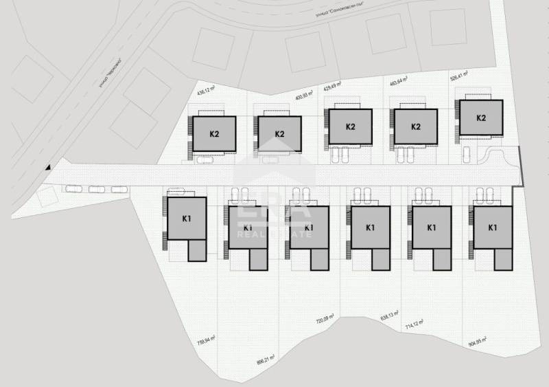 Идеен проект за комплекс от 11 самостоятелни къщи върху парцела, със следните параметри: