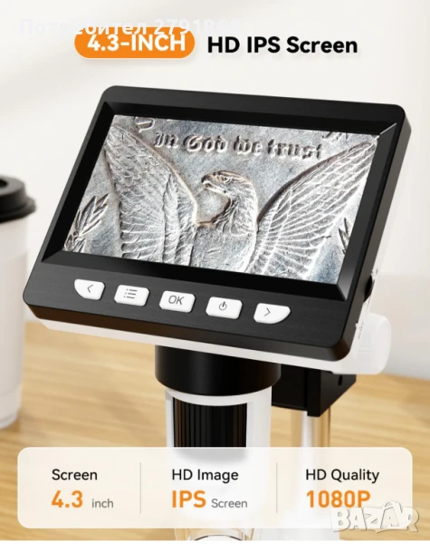 4.3" цифров микроскоп за възрастни,монетен микроскоп с 1000-кратно увеличение