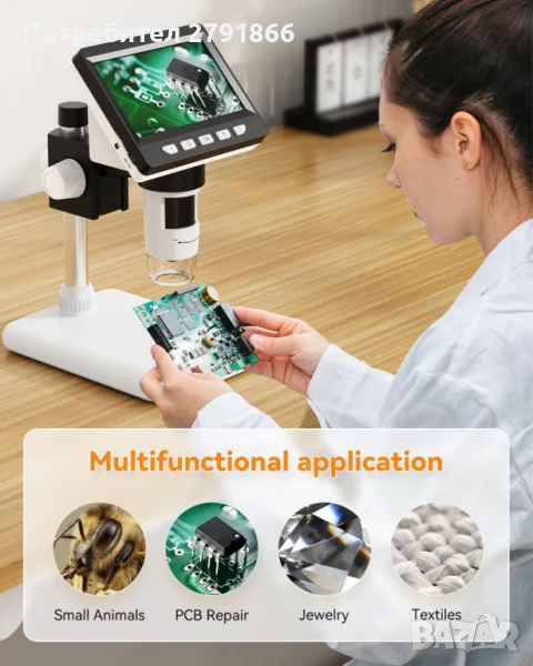- 🔎Широко приложение - Този LCD микроскоп е подходящ за проверка на монети и бижута за грешки, анализ на платки, образование, печати, ремонт на часовници, откриване на кожа и други.
