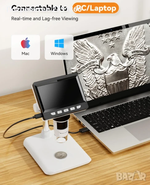 - 🔎Съвместимост с Windows и MacOS - Свържете вашия цифров микроскоп и отключете пълния му потенциал с устройства с Windows или MacOS, което ще ви позволи да наблюдавате по-голямо изображение, лесно прехвърляне на данни и заснемане на изображения.